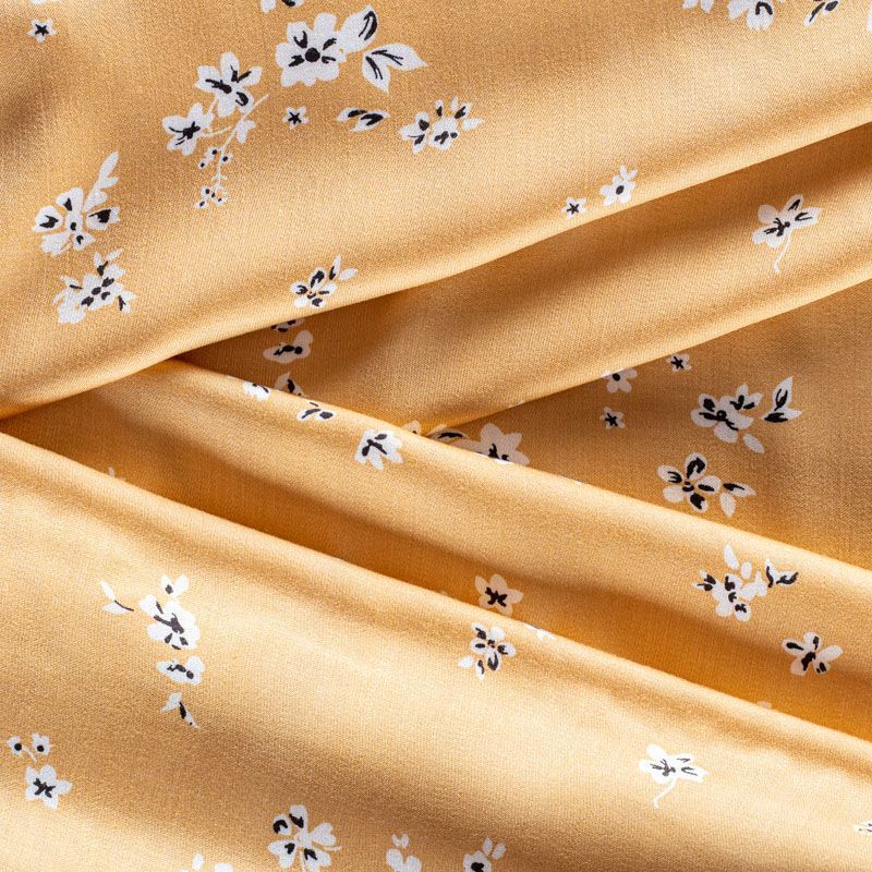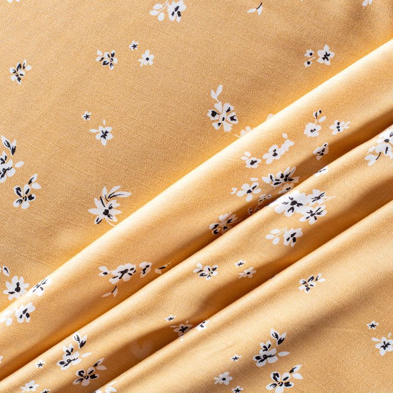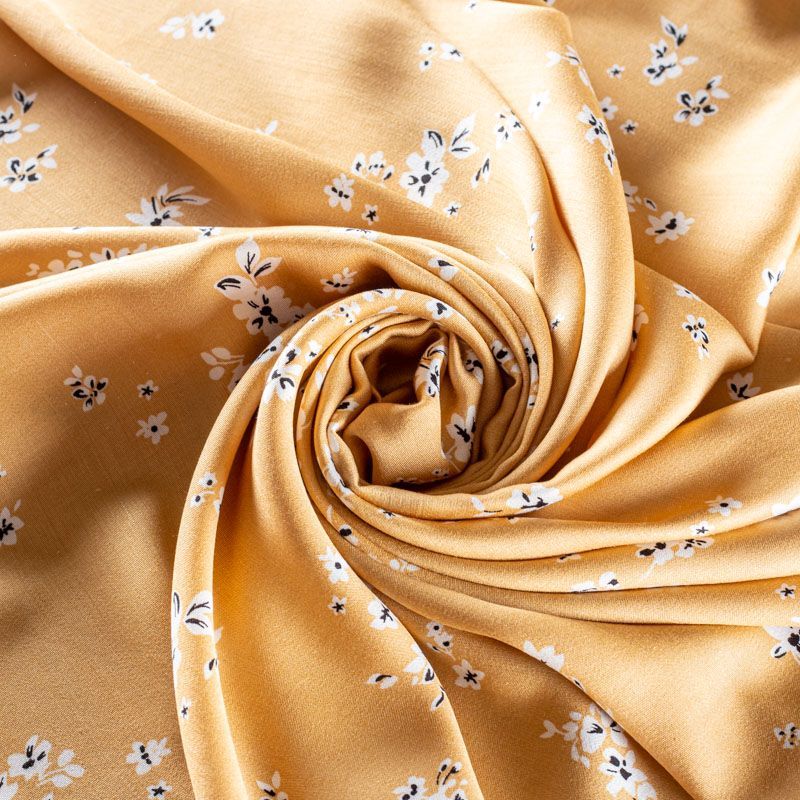 Плательно-блузочный штапель с добавлением шелка с мелким цветочным принтом. Ткань очень мягкая, нежная, пластичная, шелковистая на ощупь, хорошо драпируется, практичная. Особенно актуальна летом, шелк-штапель очень легкий, обволакивающий прохладой. Идеален для пошива летней детской одежды, сарафанов, платьев, юбок, блузок, домашней одежды: халатов, ночной пижамы.