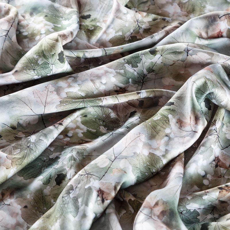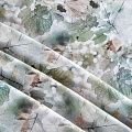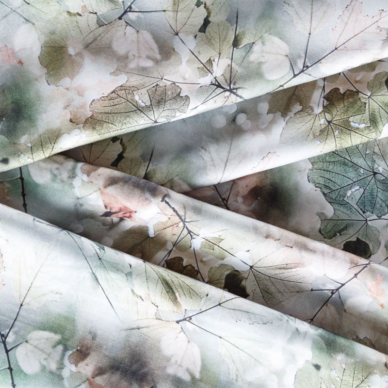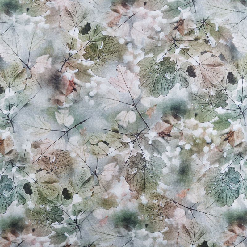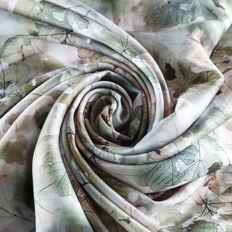 Плательно-блузочный штапель с добавлением шелка зеленовато-коричневых оттенках с реалистичным растительным принтом. Мягкий, нежный, пластичный, шелковистый на ощупь, хорошо драпируется, практичный. Особенно актуален летом, он очень легкий, обволакивающий прохладой. Идеален для пошива летней детской одежды, сарафанов, платьев, юбок, блузок, домашней одежды: халатов, ночной пижамы.