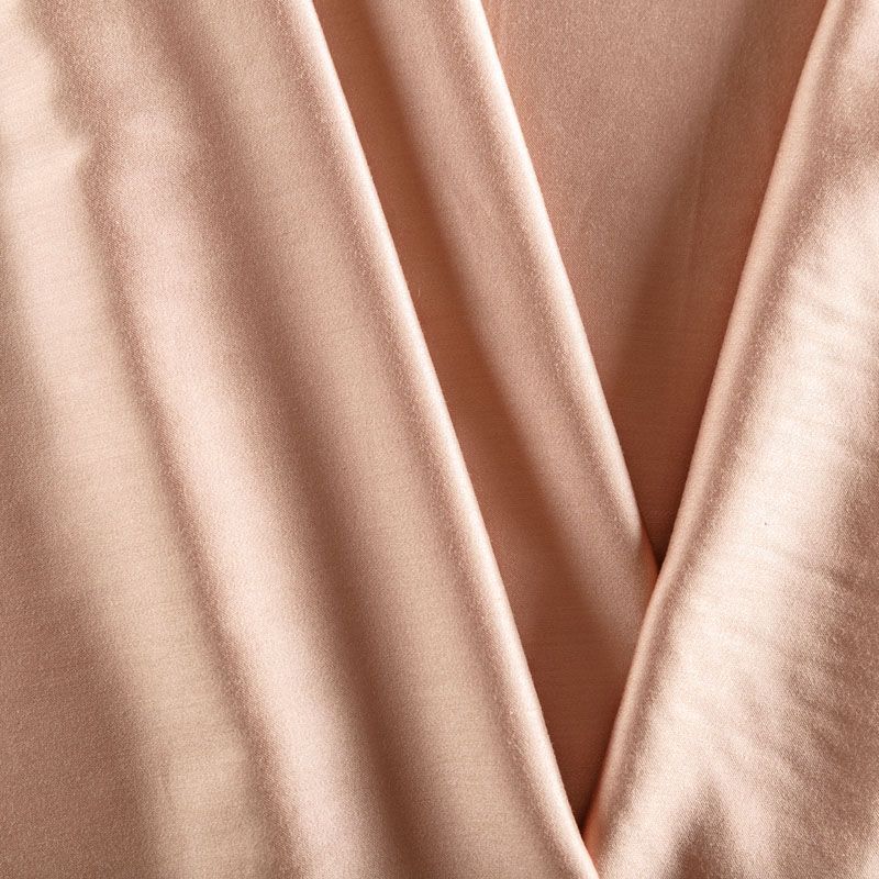 Плательно-блузочный штапель с добавлением шелка в пудровом оттенке. Мягкий, нежный, пластичный, шелковистый на ощупь, хорошо драпируется, практичный, тянется за счет эластана в составе. Особенно актуален летом, он очень легкий, обволакивающий прохладой. Идеален для пошива летней детской одежды, сарафанов, платьев, юбок, блузок, домашней одежды: халатов, ночной пижамы.