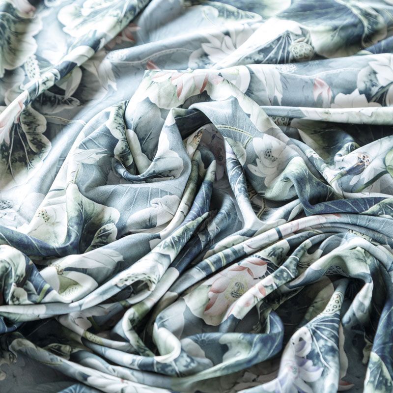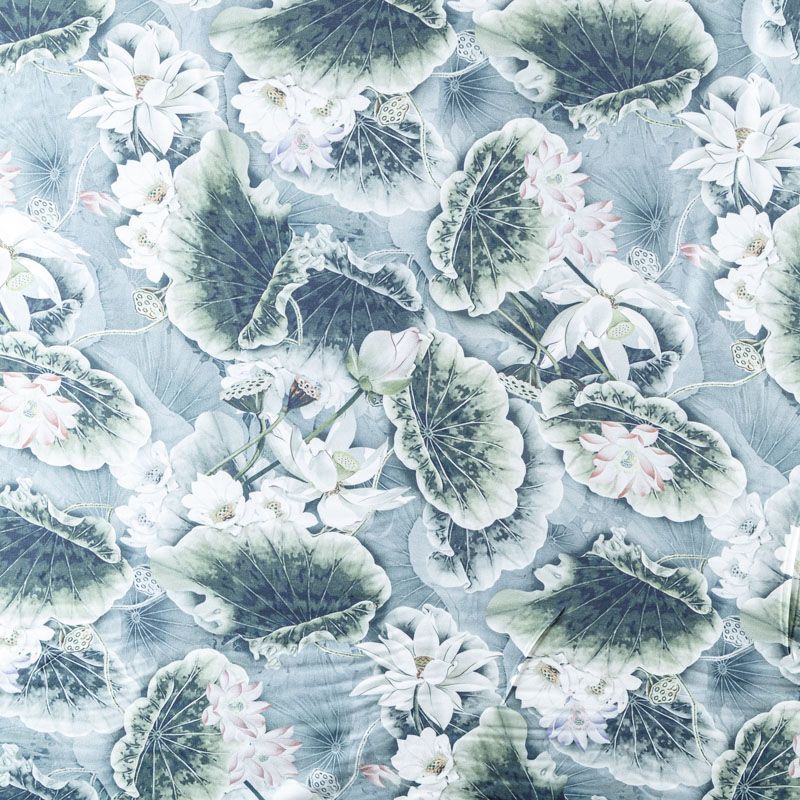 Шелк-штапель 069-08025 серо-зеленый принтованный