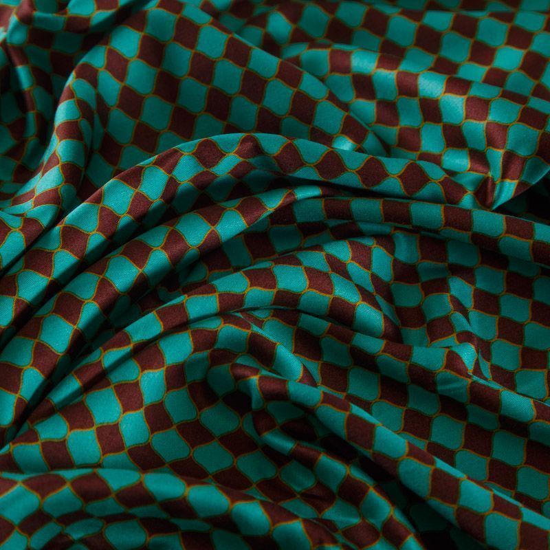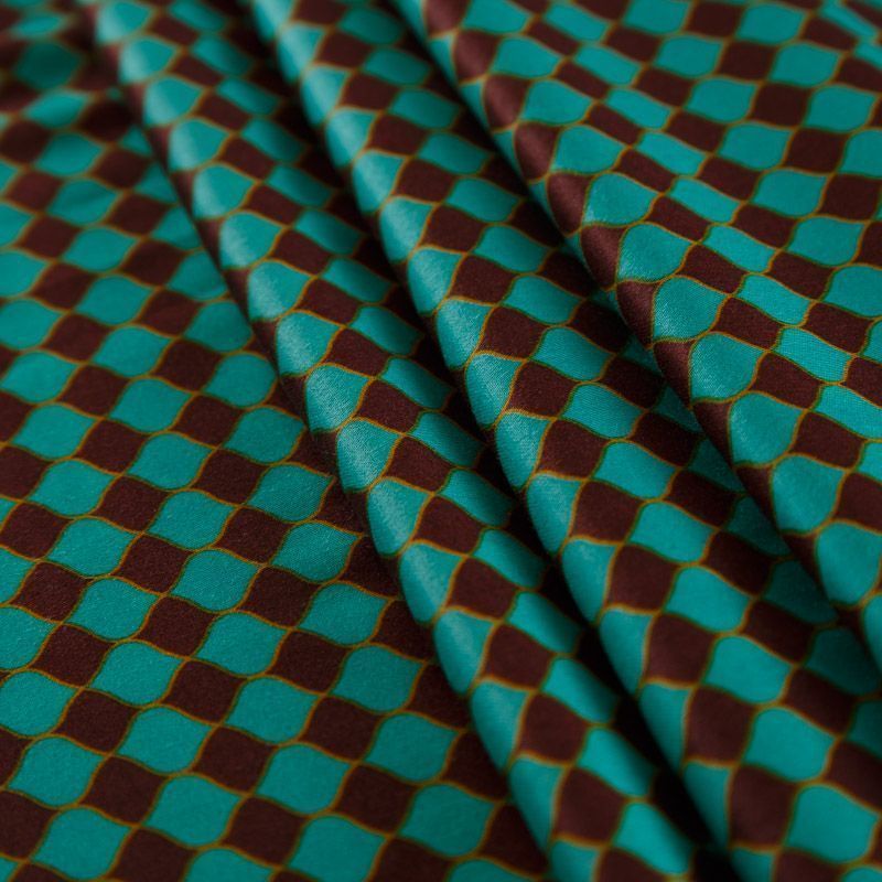 Итальянский плательно-блузочный штапель с добавлением шелка с геометрическим принтом из коллекции Prada. Ткань очень мягкая, нежная, пластичная, шелковистая на ощупь, хорошо драпируется, практичная. Особенно актуальна летом, шелк-штапель очень легкий, обволакивающий прохладой. Идеален для пошива летней детской одежды, сарафанов, платьев, юбок, блузок, домашней одежды: халатов, ночной пижамы.