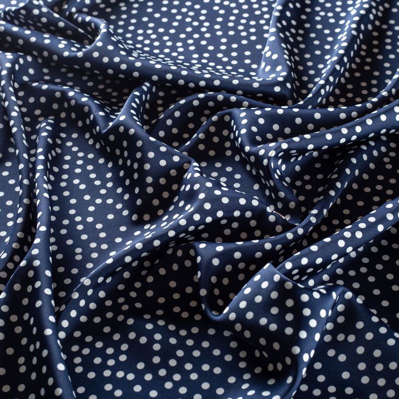 Тонкая, легкая, струящаяся ткань, не просвечивает, очень нежная и прятная к телу, обладает благородным атласным блеском, хорошо драпируется, тянется за счет эластана в составе. Идеально подойдет для пошива блузок, платьев и юбок, а также топов, платков, домашней одежды.