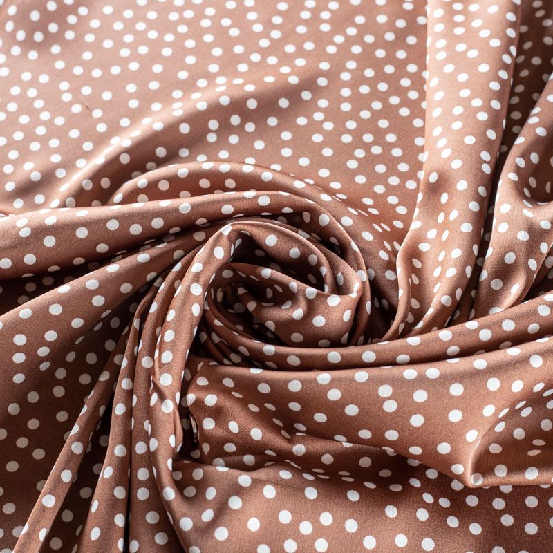 Тонкая, легкая, струящаяся ткань, не просвечивает, очень нежная и прятная к телу, обладает благородным атласным блеском, хорошо драпируется, тянется за счет эластана в составе. Идеально подойдет для пошива блузок, платьев и юбок, а также топов, платков, домашней одежды.
