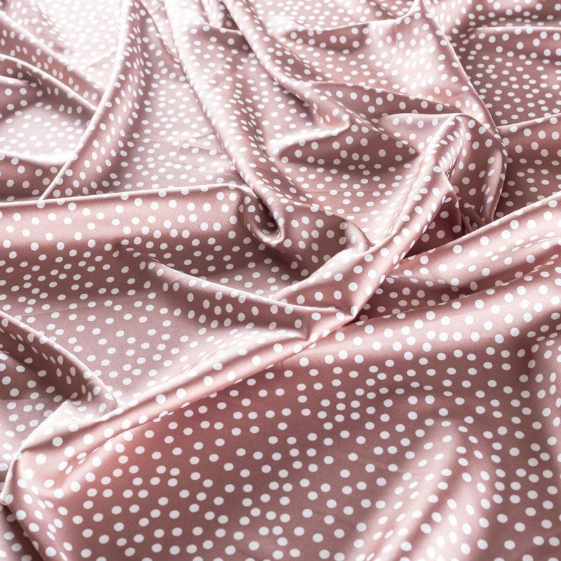 Тонкая, легкая, струящаяся ткань, не просвечивает, очень нежная и прятная к телу, обладает благородным атласным блеском, хорошо драпируется, тянется за счет эластана в составе. Идеально подойдет для пошива блузок, платьев и юбок, а также топов, платков, домашней одежды.