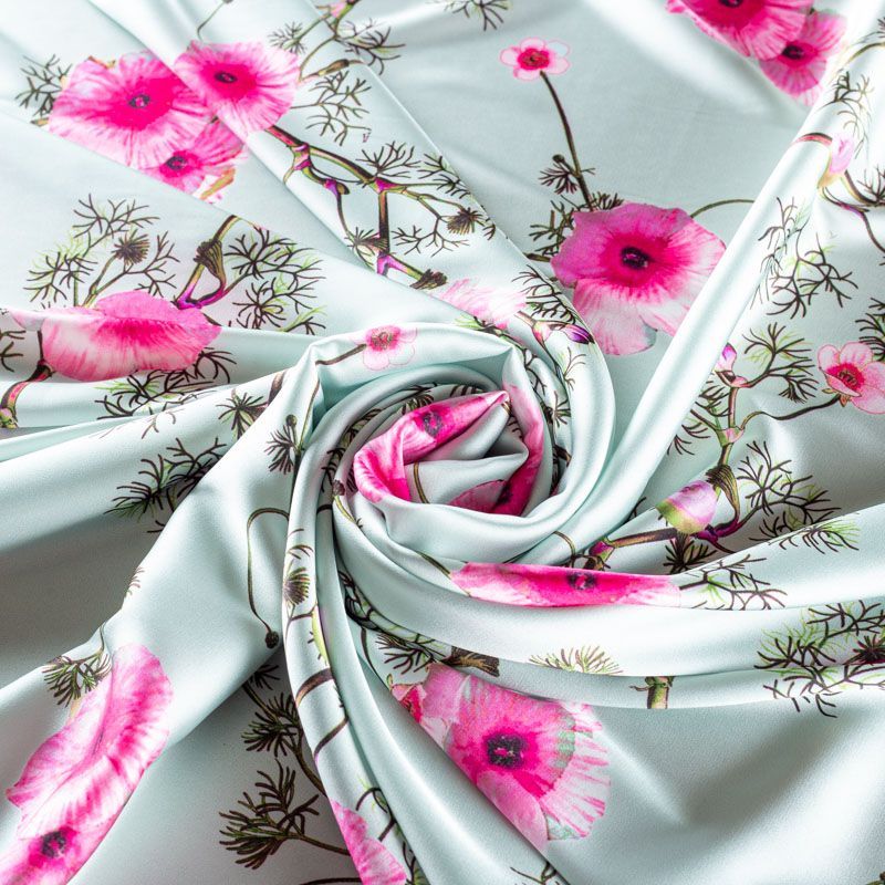 Шелк синтетический 065-01533 серо-мятный принтованный