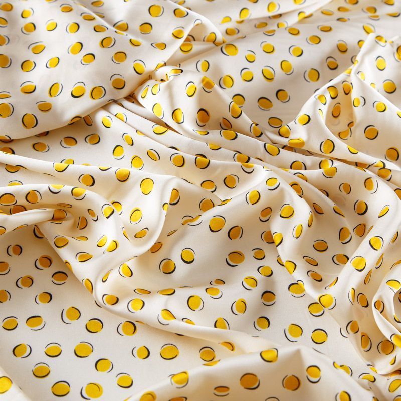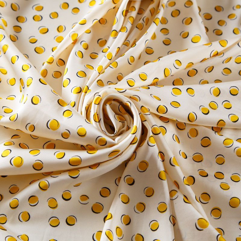 Шелк синтетический 065-13574 сливочный принтованный
