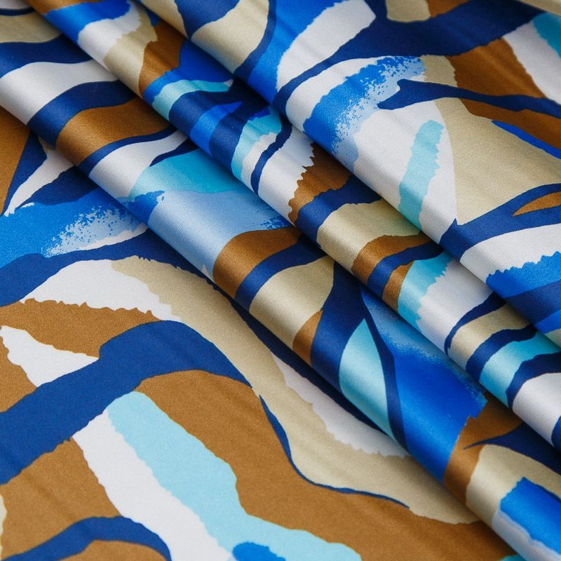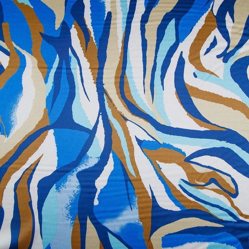Шелк синтетический стрейч 065-17539 сине-голубой принтованный в Салехарде