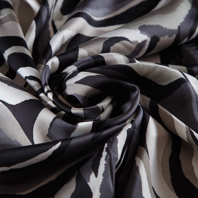 Шелк синтетический стрейч 065-17540 черно-серый принтованный в Салехарде