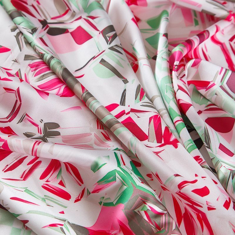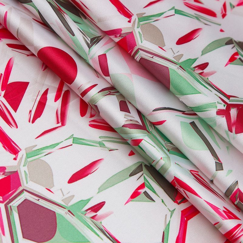 Шелк синтетический стрейч 065-17630 белый принтованный в Салехарде