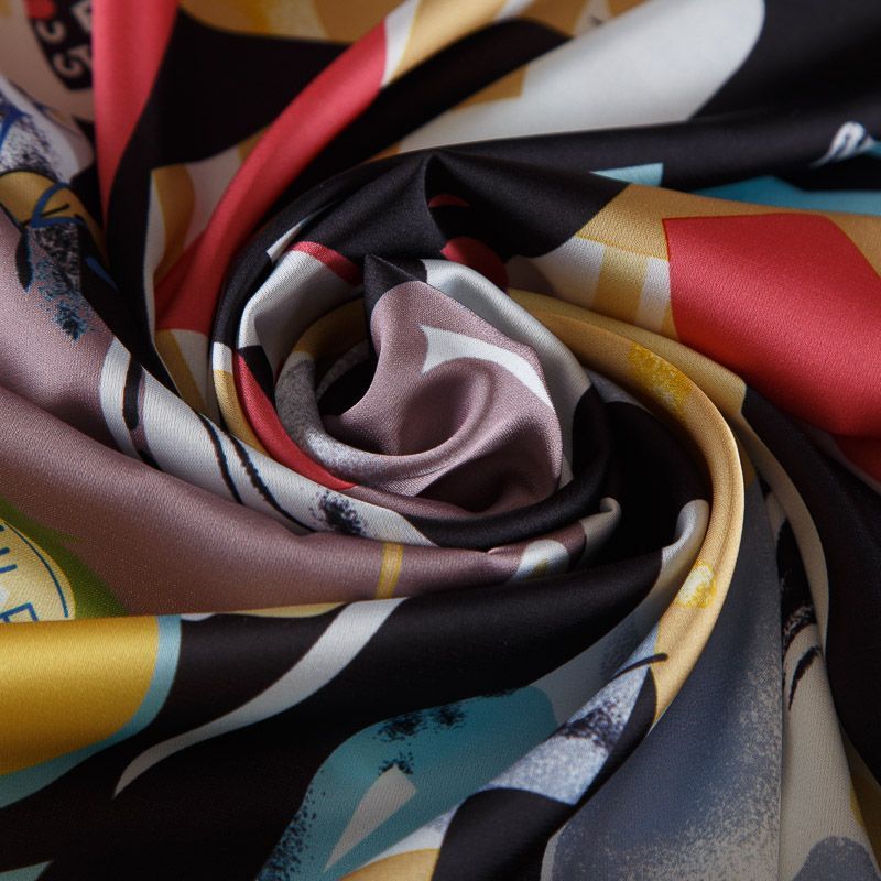 Шелк синтетический стрейч 065-17787 черный принтованный