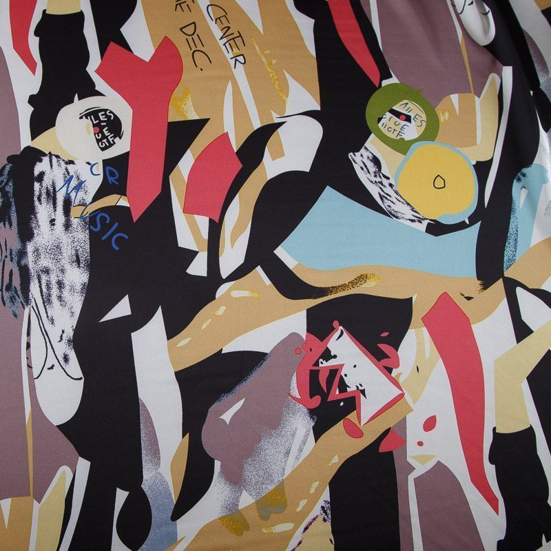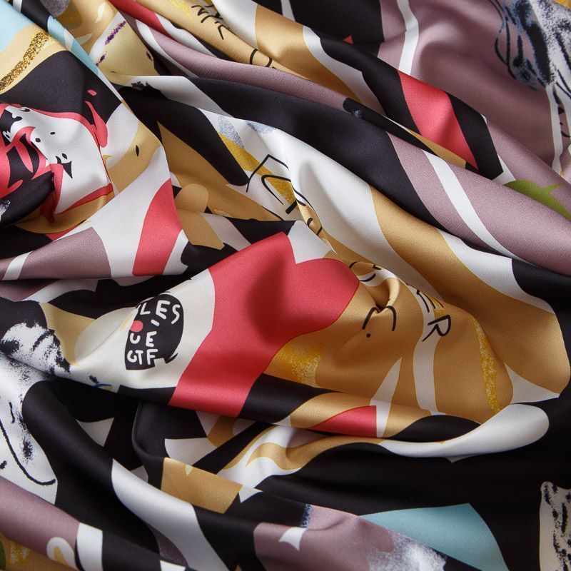 Шелк синтетический стрейч 065-17787 черный принтованный в Салехарде