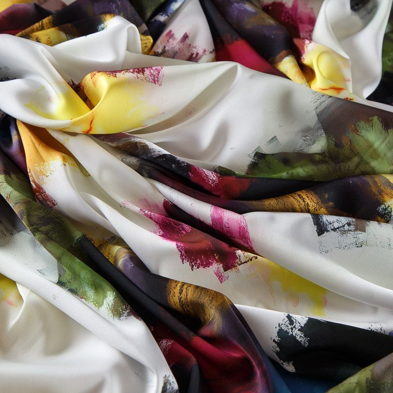 Шелк синтетический стрейч 065-17800 белый принтованный