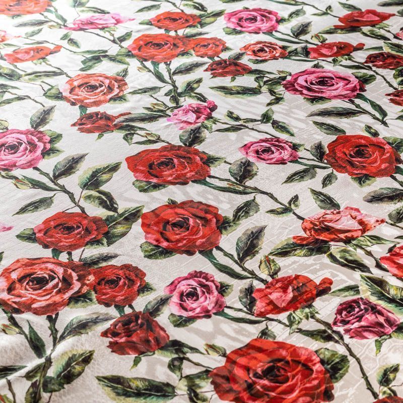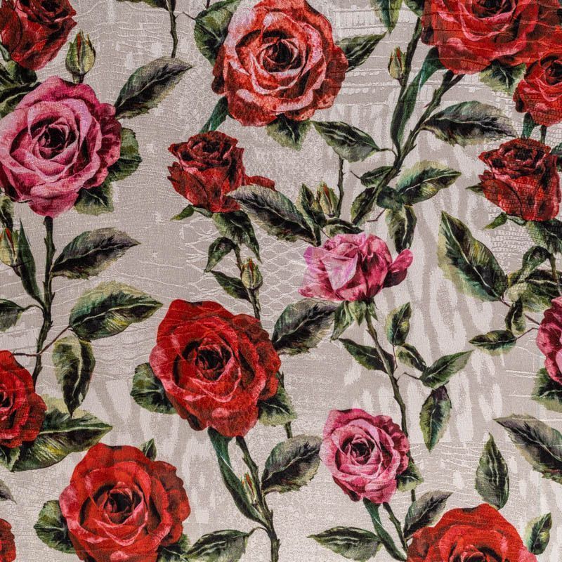 Итальянский жаккардовый шелк с цветочным принтом  Поверхность ткани фактурная "под рептилию", со сдержанным блеском, смотрится оригинально и необычно. Ткань тонкая и легкая, немного просвечивает, может потребоваться подклад, струится, хорошо драпируется. Подойдет для летних вечерних и коктельных платьев, накидок, юбок, блузок, топов, костюмов, широких брюк, домашней и пляжной одежды.