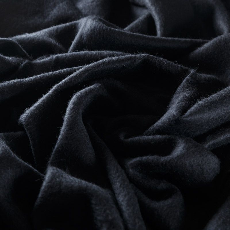Итальянская костюмно-пальтовая шерсть в черном цвете. Ткань хорошо держит форму, приятная на ощупь, гибкая, средней толщины, при этом высокой плотности. Поверхность имеет короткий ворс. Подойдет для пошива теплого костюма, юбки, пальто, куртки, жакета, парки, кейпа, жакета или пончо.