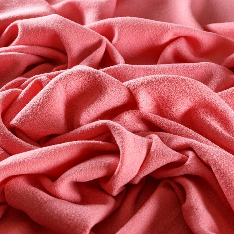 Итальянский шерстяной фактурный креп в розовом оттенке. Ткань хорошо держит форму, приятная на ощупь, гибкая, средней толщины, средней плотности. Подойдет для пошива теплого костюма, юбки, облегченного пальто, куртки, жакета, парки, кейпа, жакета или пончо.