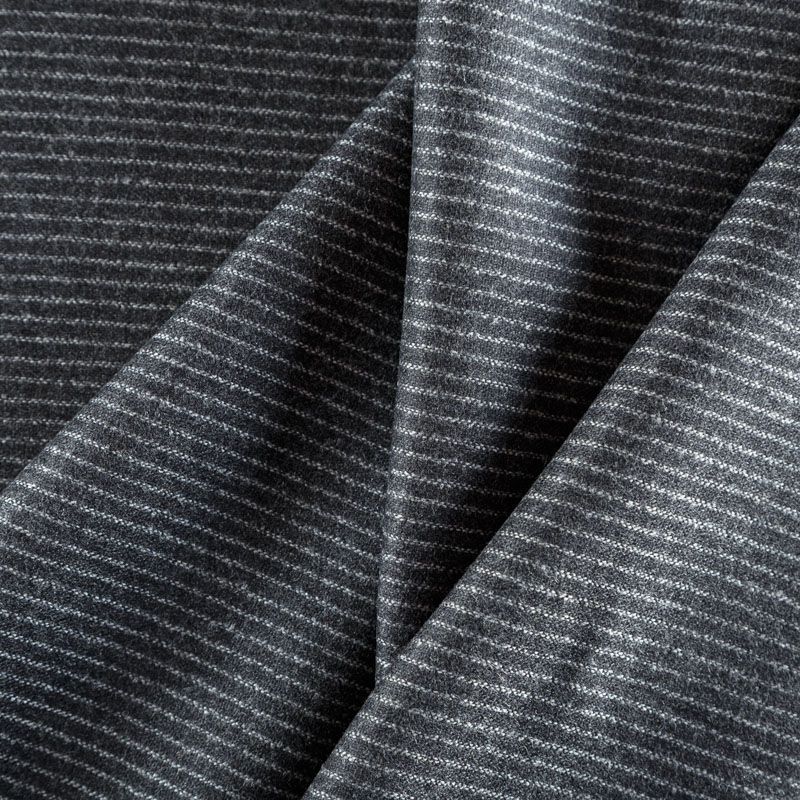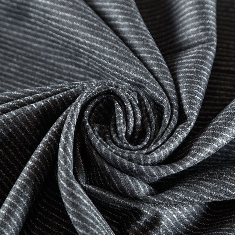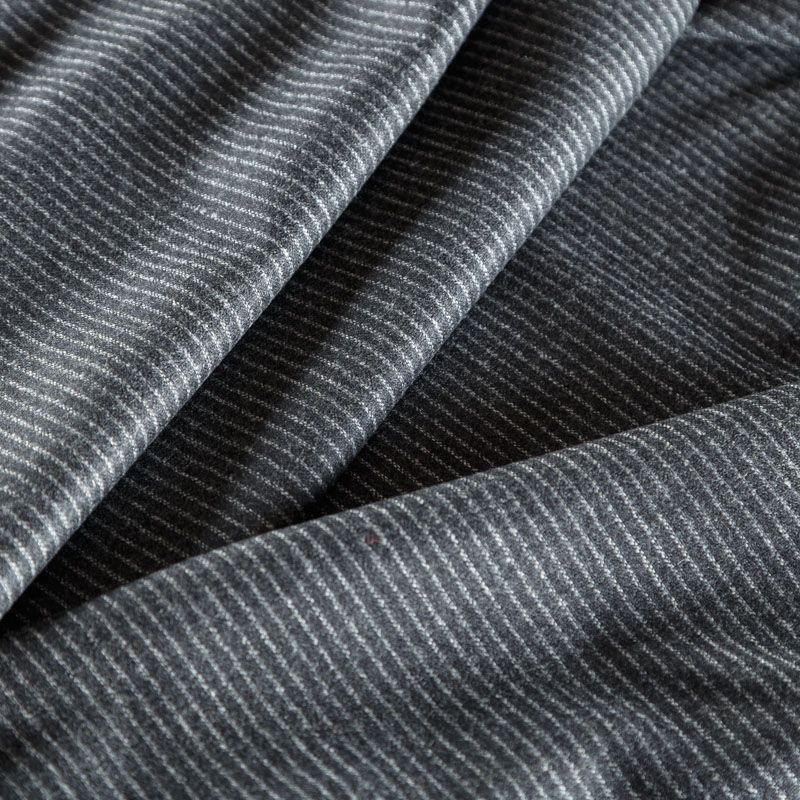 Итальянская костюмно-плательная шерсть с частой полоской на темно-сером фоне. Ткань очень хорошо драпируется, пластичная, не сухая, мягкая, теплая и уютная. Шерсть не колется, в носке очень комфортная. Подойдет для пошива стильного платья, юбки, теплых костюмов, жакетов, школьной формы.