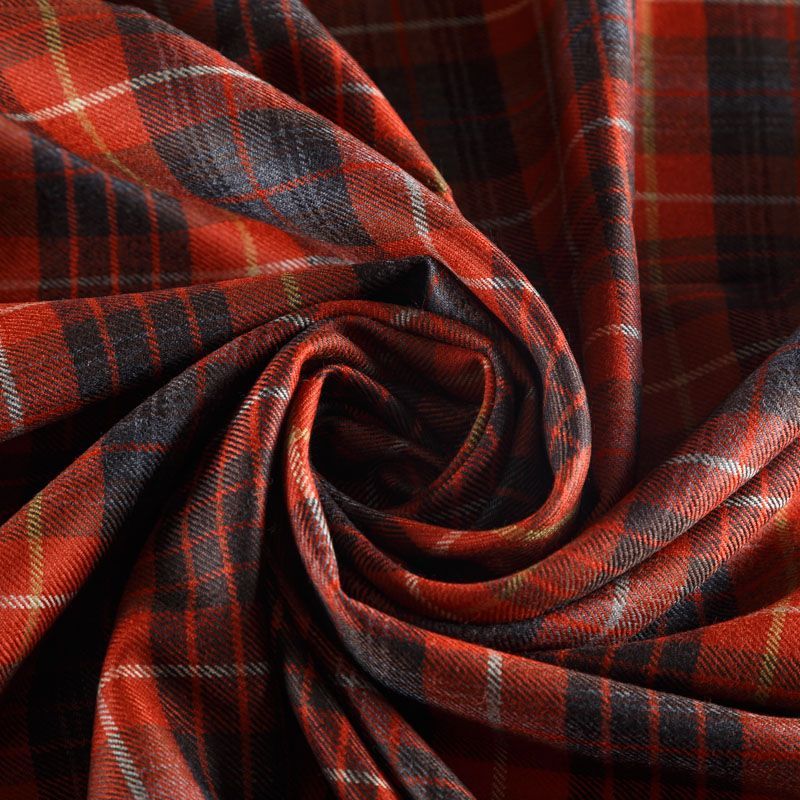 Костюмно-плательная итальянская шерсть средней плотности, мягкая, пластичная, хорошо драпируется и ниспадает. Очень теплая, уютная, не колется, в носке очень комфортная. Сочетание линий черного, серого, белого и терракотового цветов образуют сложную клетку тартан. Ткань прекрасно подойдет для пошива стильного платья прямого или расклешенного силуэта для сезона осень-зима, куртки-рубашки, юбки, костюмов, жакетов, брюк или шорт.