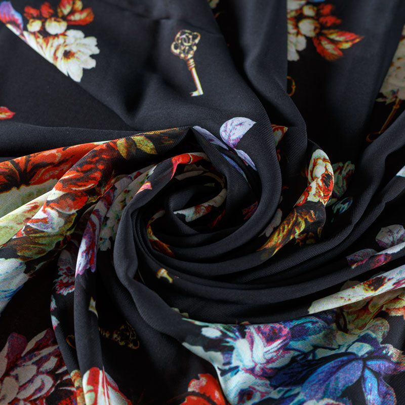 Шифон 068-08386 черный принтованный в Салехарде