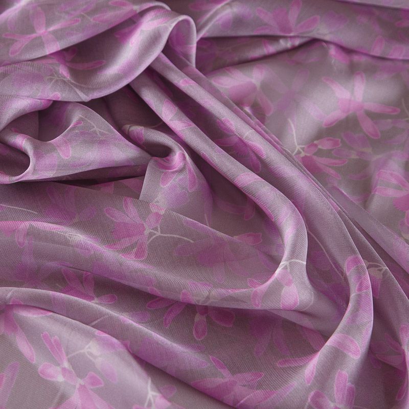 Шифон 068-17384 разбеленный лиловый принтованный в Салехарде
