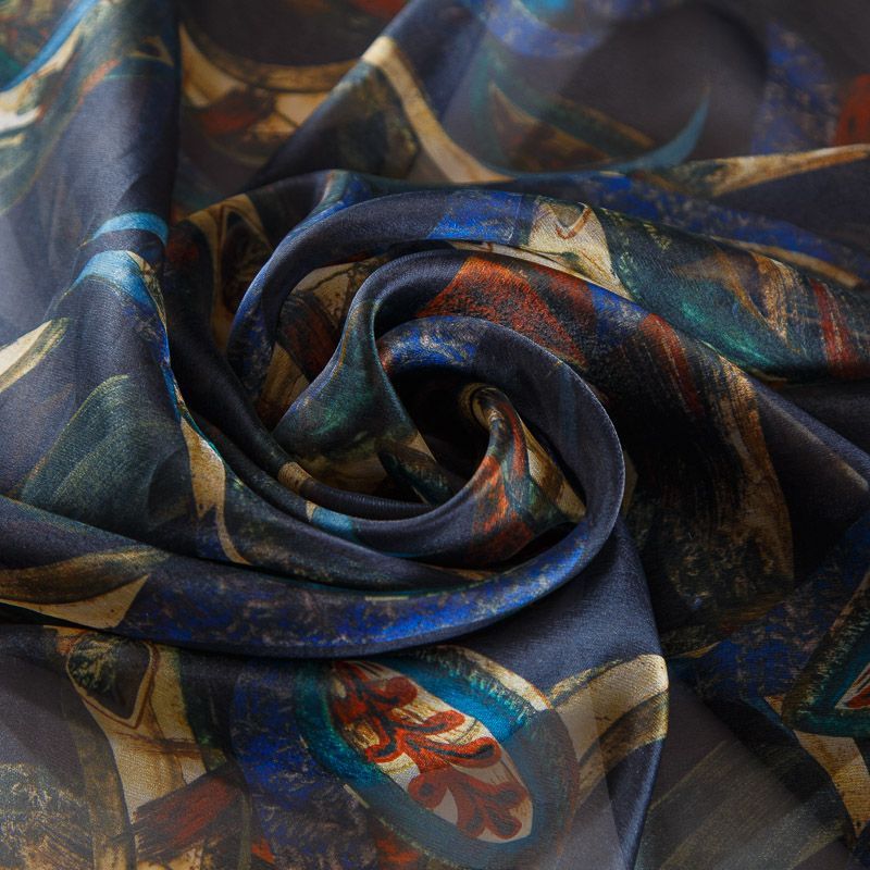 Шифон 068-17399 темно-синий принтованный в Салехарде