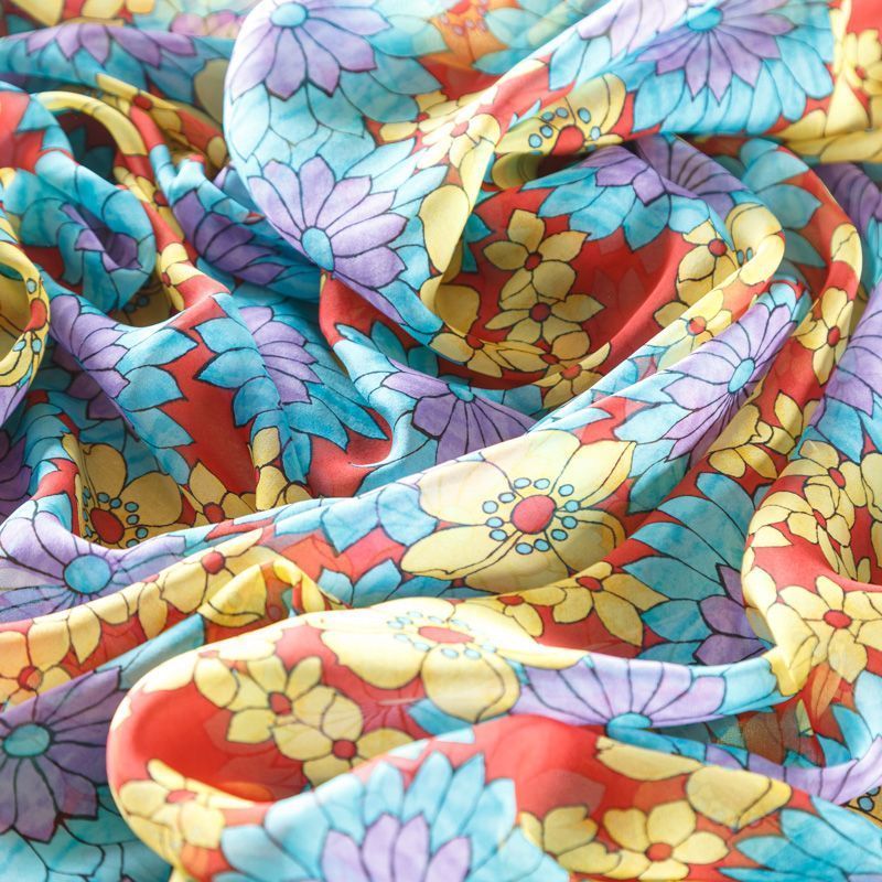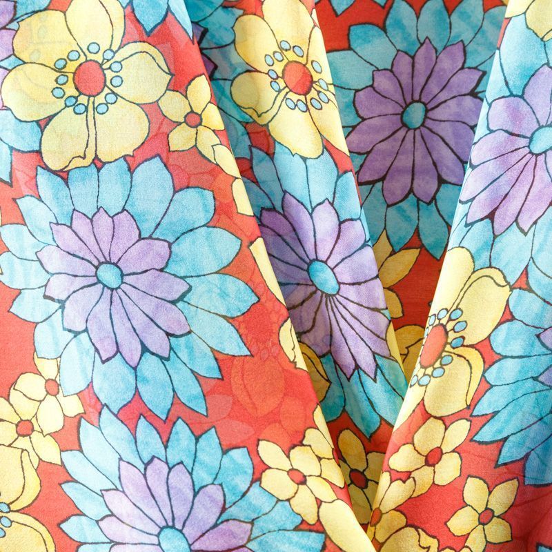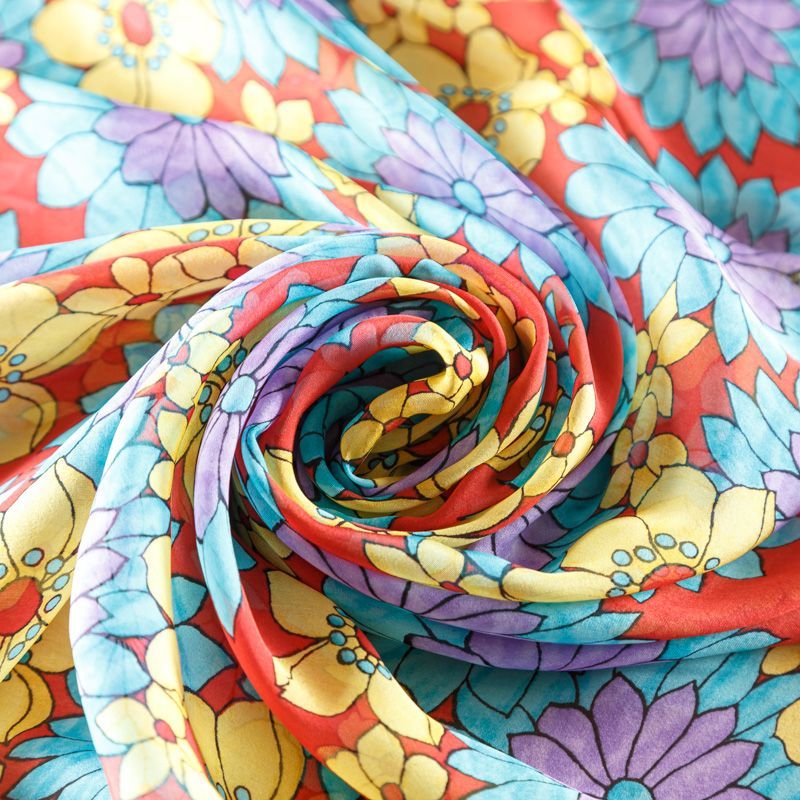 Шифон натуральный К01-702 красный принтованный в Салехарде