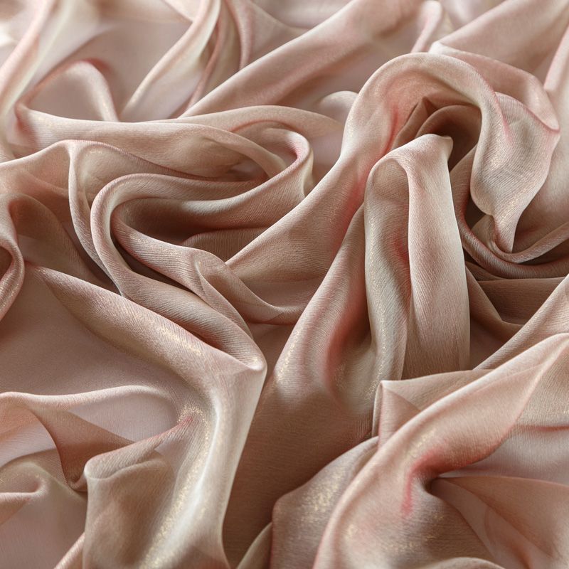 Тонкая, полупрозрачная, легкая ткань, лицевая сторона которой покрыта блестящим напылением. Шифон прекрасно драпируется, струящийся и воздушный. На ощупь шифон очень мягкий и приятный, поверхность слегка шероховатая. Подойдет для пошива тончайших воздушных блуз, изумительных вечерних и летних платьев в пол, коротких коктейльных платьев, топов, блузок, туник и элегантных шарфов.
