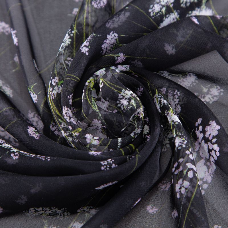 Шифон шелковый 027-20194 черный принтованный в Салехарде