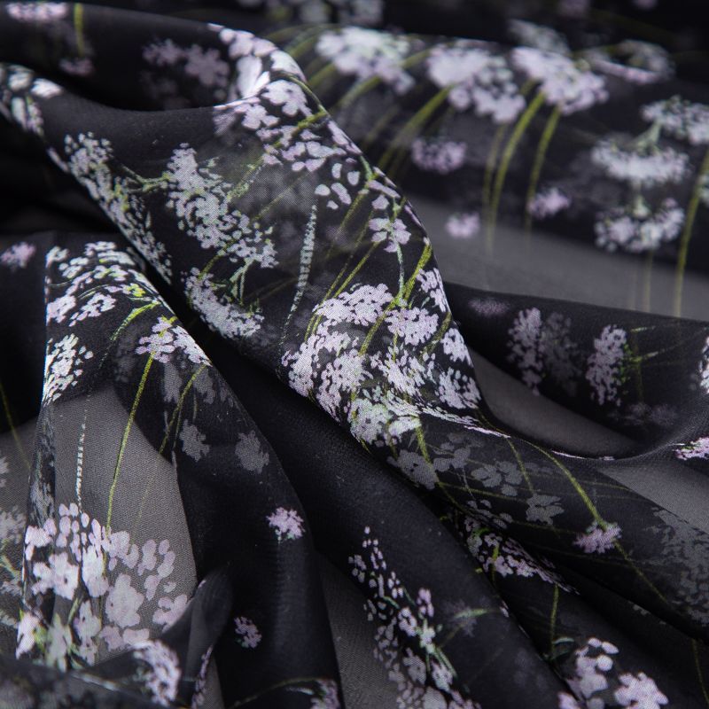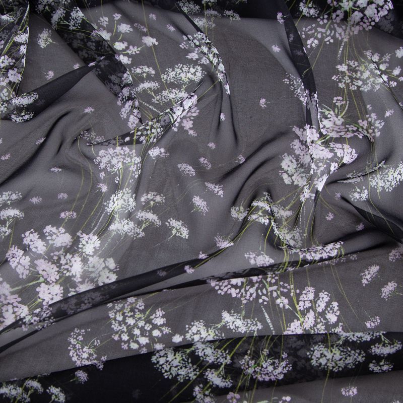 Шифон шелковый 027-20194 черный принтованный