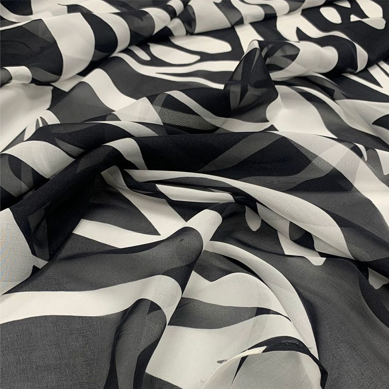Шифон шелковый 068-11796 черный принтованный в Салехарде