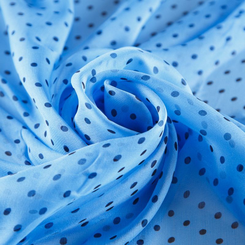 Шифон шелковый 068-12212 голубой принтованный