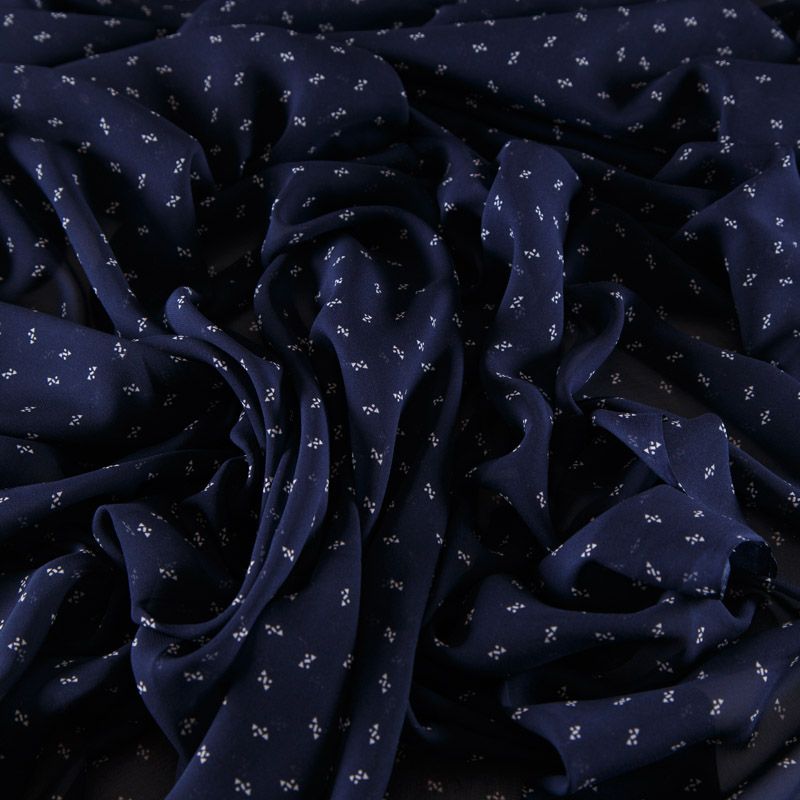 Шифон шелковый 068-12254 темно-синий принтованный
