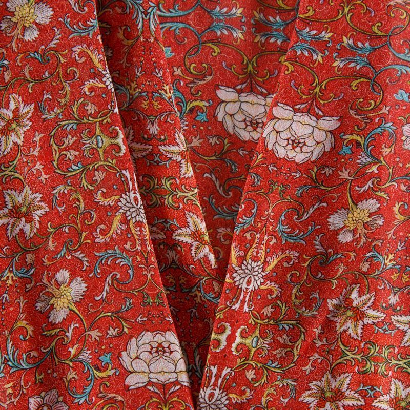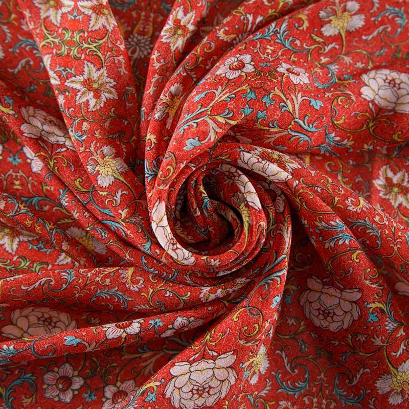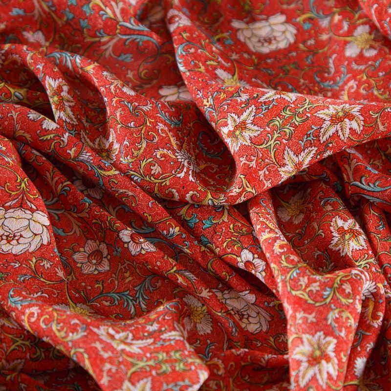 Шифон шелковый 068-12316 кораллово-красный принтованный в Салехарде