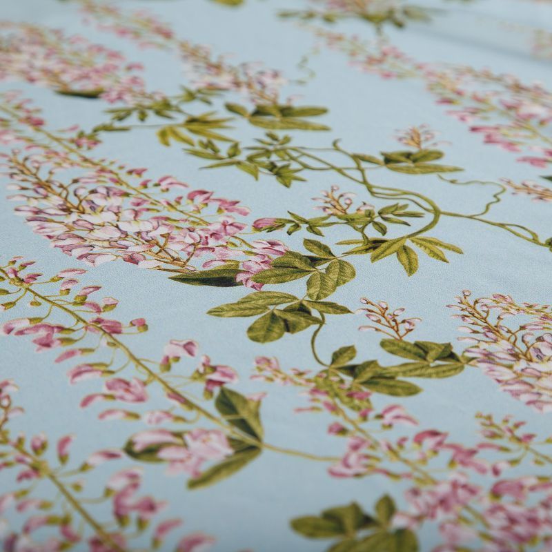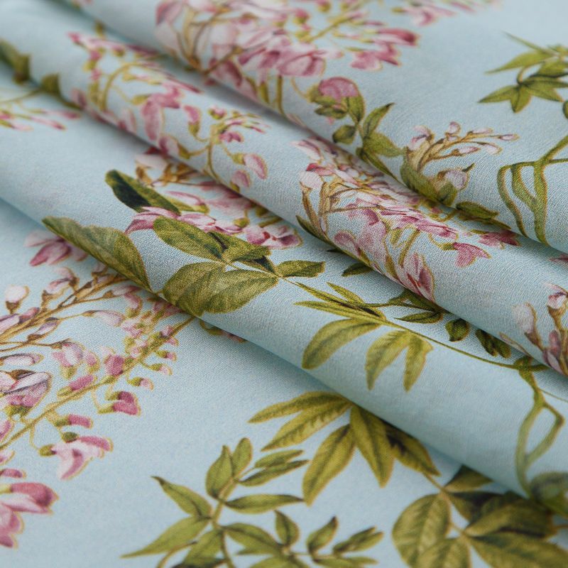 Шифон шелковый 068-19105 разбеленный голубой принтованный