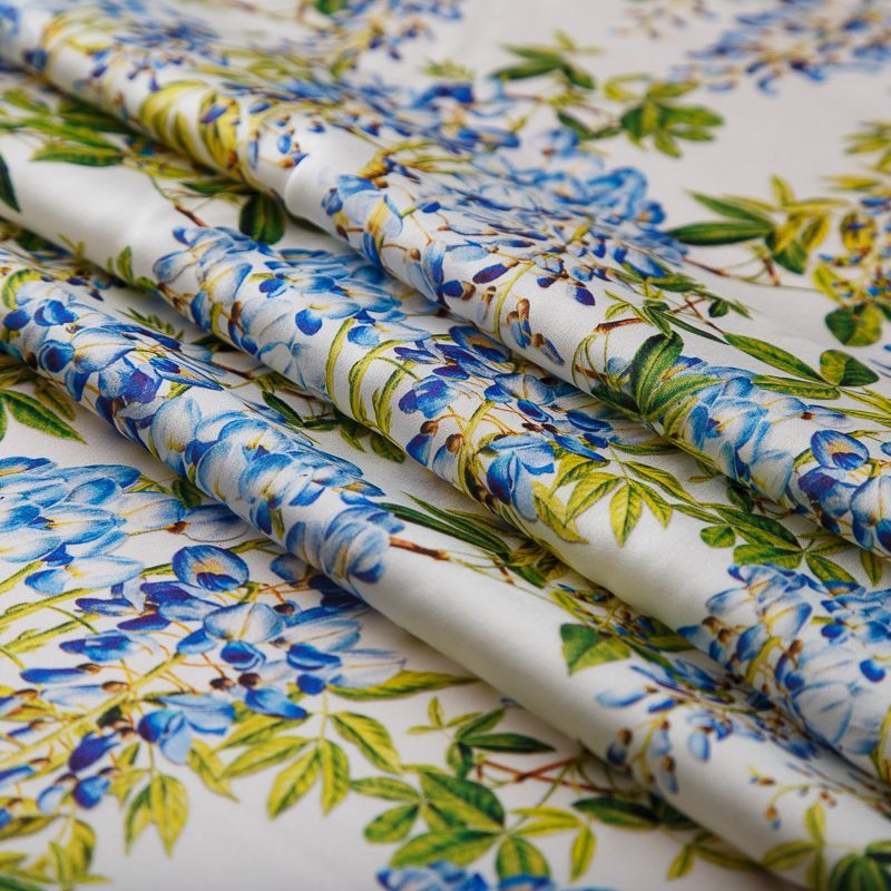 Шифон шелковый 068-19108 молочный принтованный в Салехарде