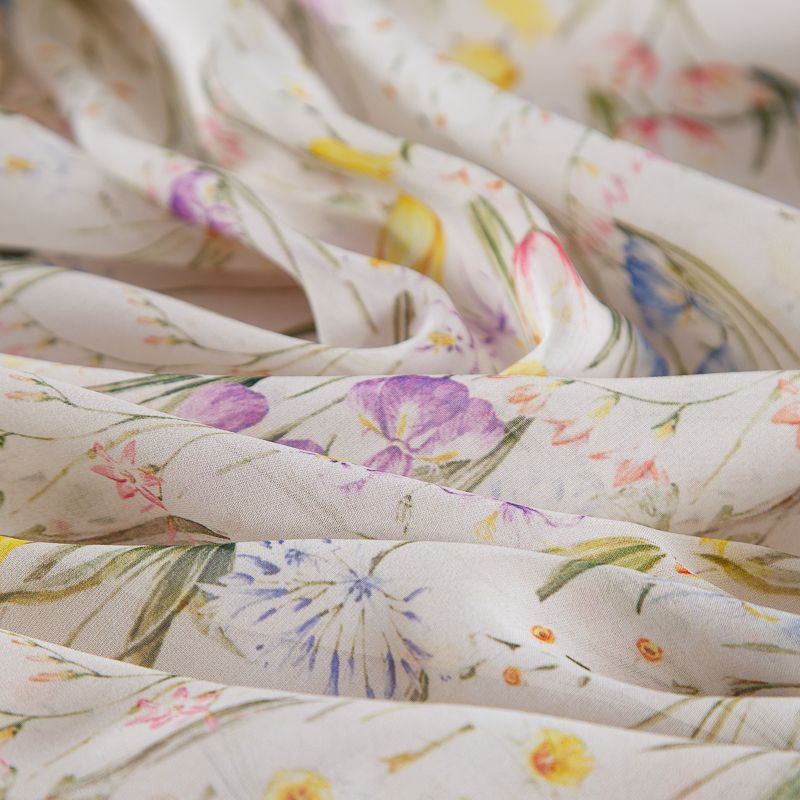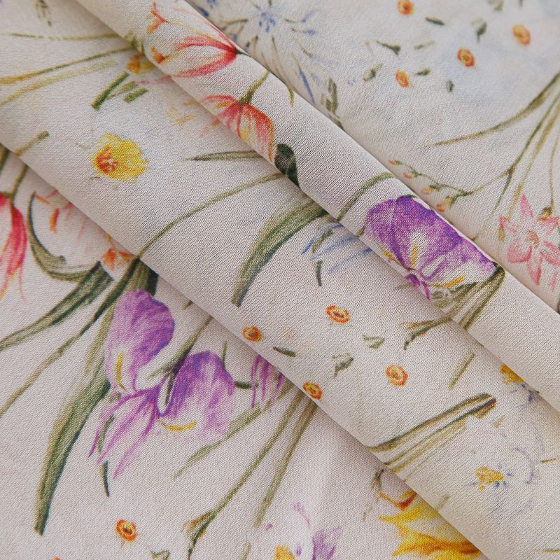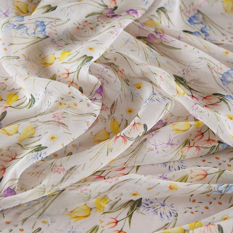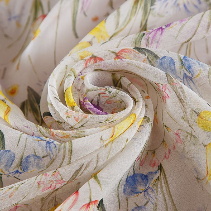Шифон шелковый 068-19177 молочный принтованный в Салехарде