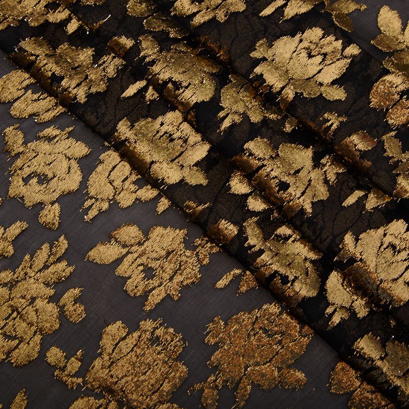Шифон шелковый с люрексом Yves Saint Laurent 068-19076 черный/золото
