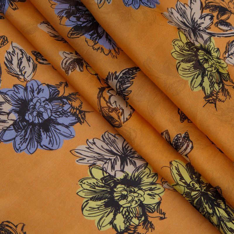 Шифон вискозный 068-16093 тыквенный принтованный в Салехарде