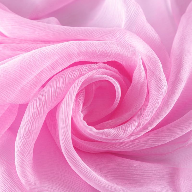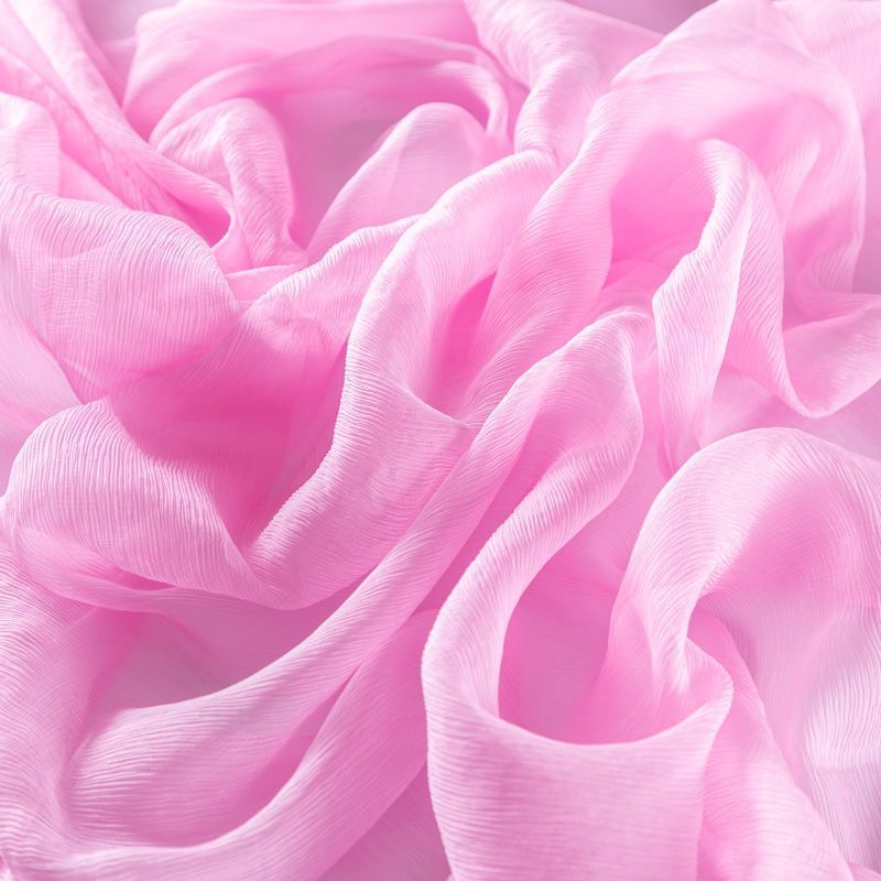 Воздушная шелковая жатая ткань, легкая, тонкая, полупрозрачная. На ощупь шифон-жатка очень мягкий и приятный, не тянется. Подойдет для пошива тончайших воздушных блуз, изумительных вечерних и летних платьев в пол, коротких коктейльных платьев, топов, блузок, туник и элегантных шарфов.