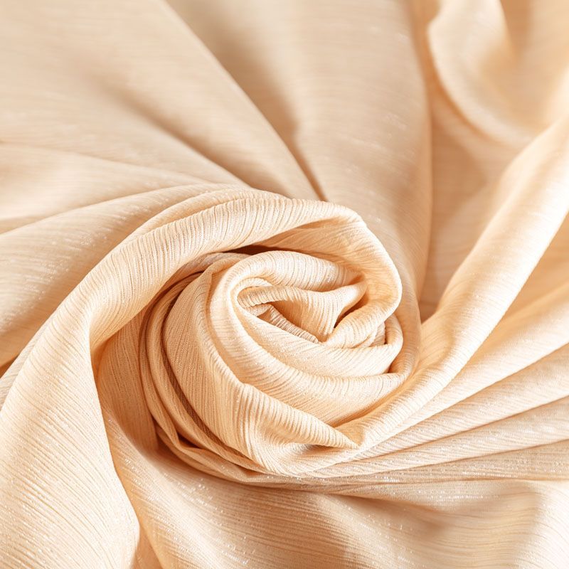 Воздушная жатая ткань с прозрачной люрексной нитью, легкая, тонкая, полупрозрачная. Не тянется и хорошо сохраняет форму. На ощупь шифон-жатка очень мягкий и приятный. Подойдет для пошива тончайших воздушных блуз, изумительных вечерних и летних платьев в пол, коротких коктейльных платьев, топов, блузок, туник и элегантных шарфов.