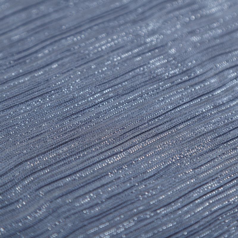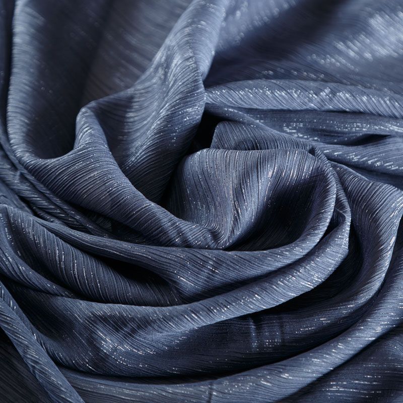 Воздушная жатая ткань с прозрачной люрексной нитью, легкая, тонкая, полупрозрачная. Не тянется и хорошо сохраняет форму. На ощупь шифон-жатка очень мягкий и приятный. Подойдет для пошива тончайших воздушных блуз, изумительных вечерних и летних платьев в пол, коротких коктейльных платьев, топов, блузок, туник и элегантных шарфов.