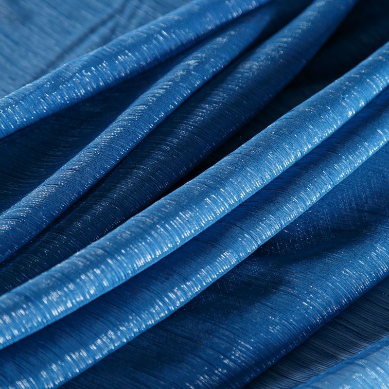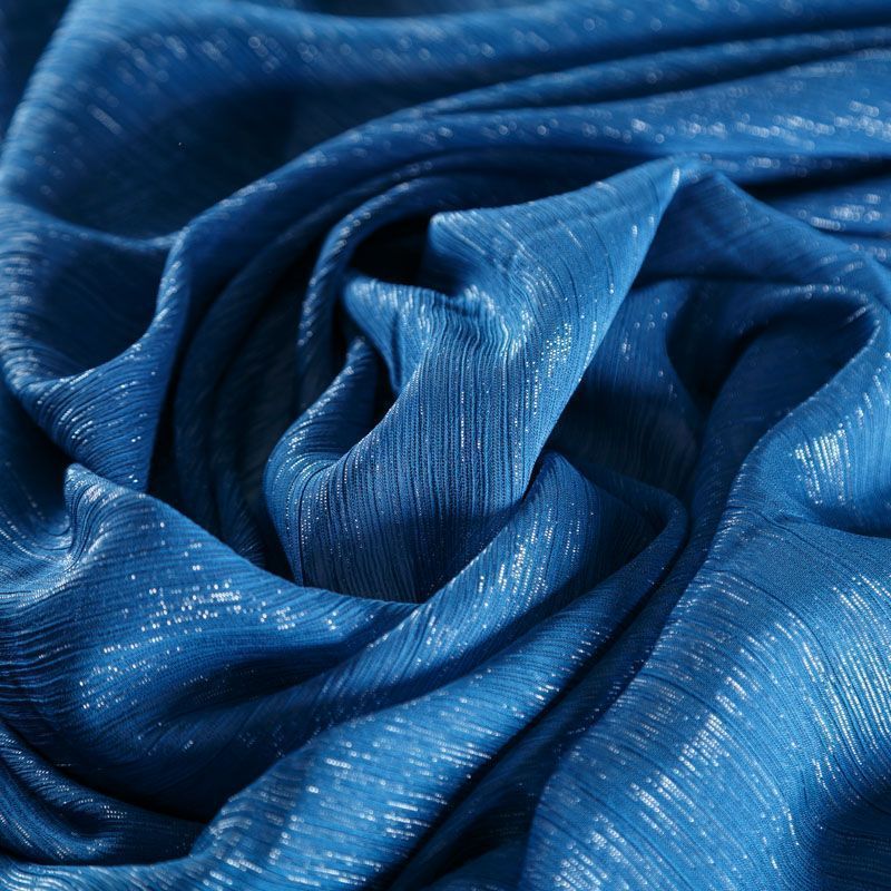 Воздушная жатая ткань с прозрачной люрексной нитью, легкая, тонкая, полупрозрачная. Не тянется и хорошо сохраняет форму. На ощупь шифон-жатка очень мягкий и приятный. Подойдет для пошива тончайших воздушных блуз, изумительных вечерних и летних платьев в пол, коротких коктейльных платьев, топов, блузок, туник и элегантных шарфов.