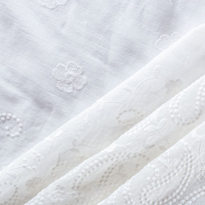 Мягкий и нежный итальянский батист белоснежного оттенка с цветочной вышивкой. Узор выполнен путём машинной вышивки нитками в цвет ткани и расположен преимущественно вдоль кромок. Набирается объемом. Фактура ткани неоднородная, имеет тенденцию к сминаемости, просвечивает, не тянется, приятная на ощупь. Идеально подходит для создания летних платьев, сарафанов, юбок, блузок и топов.