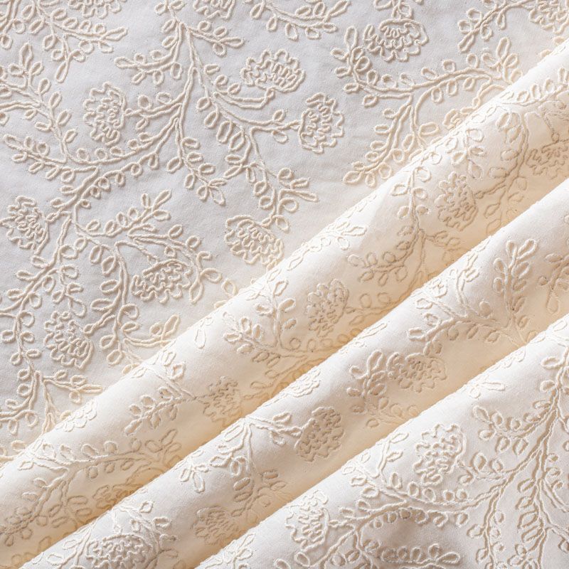 Тренд и мастхэв этого лета - итальянская вышивка на хлопковой основе. На фоне экрю плотная густая вышивка растительного тотива расположена по всему полотну. Ткань средней плотности, хорошо держит форму, приятная на ощупь, почти не просвечивает. Идеально подойдет для пошива рубашки, блузы, топа в воланами, туники, платья, сарафана, юбки.