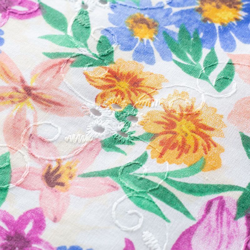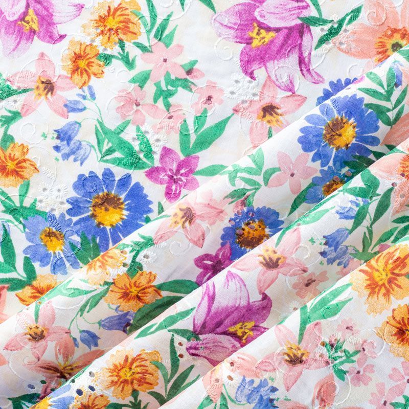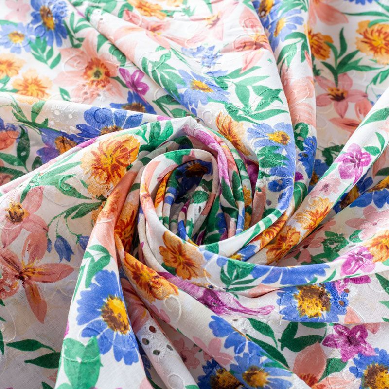 Тренд и мастхэв этого лета - итальянское шитье-ришелье на хлопковой основе с ярким цветочным принтом. Изящный тонкий узор выполнен путём машинной вышивки нитками в цвет ткани и расположен по всему полотну. Ткань мягкая, приятная на ощупь, слегка просвечивает. Идеально подойдет для пошива рубашки, блузы, топа в воланами, туники, платья, сарафана, юбки.