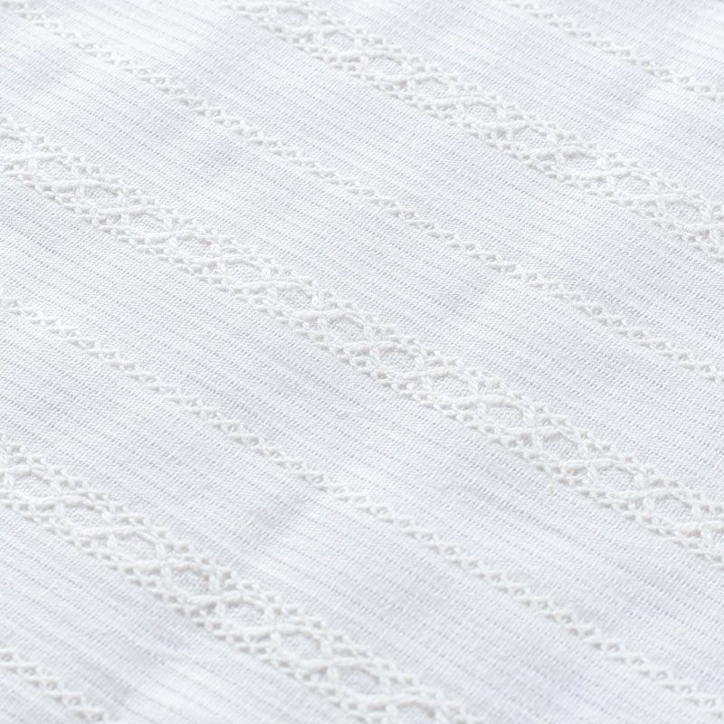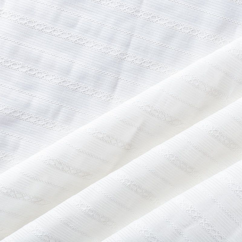 Мягкий и нежный итальянский хлопок молочного оттенка с изящной вышивкой. Узор выполнен путём машинной вышивки нитками в цвет ткани и расположен вдоль кромки. Фактура ткани неоднородная, имеет тенденцию к сминаемости, не много просвечивает, не тянется, приятная на ощупь. Идеально подходит для создания летних платьев, сарафанов, юбок, блузок и топов.