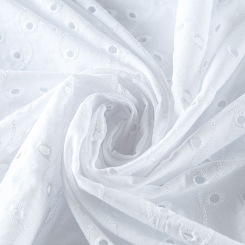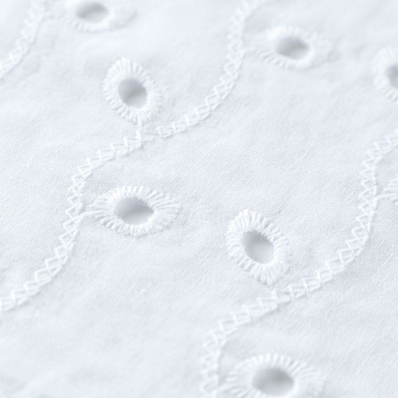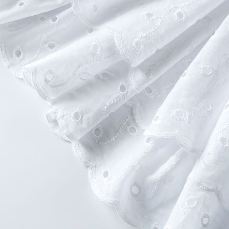 Итальянское шитье на белоснежной хлопковой основе с растительной элегантной вышивкой,  расположеннной по всему полотну. Ткань мягкая, легкая, пластичная, приятная на ощупь, просвечивает, потребуется подклад. Обе кромки ткани оформлены фигурными фестонами. Идеально подойдет для пошива рубашки, блузы, топа в воланами, туники, платья, сарафана, юбки, шорт.