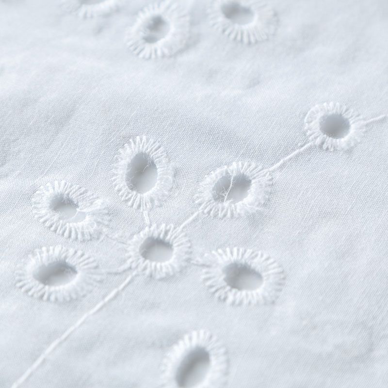 Итальянское шитье на белоснежной хлопковой основе с растительной элегантной вышивкой,  расположеннной по всему полотну. Ткань мягкая, легкая, пластичная, приятная на ощупь, просвечивает, потребуется подклад. Обе кромки ткани оформлены фигурными фестонами. Идеально подойдет для пошива рубашки, блузы, топа в воланами, туники, платья, сарафана, юбки, шорт.