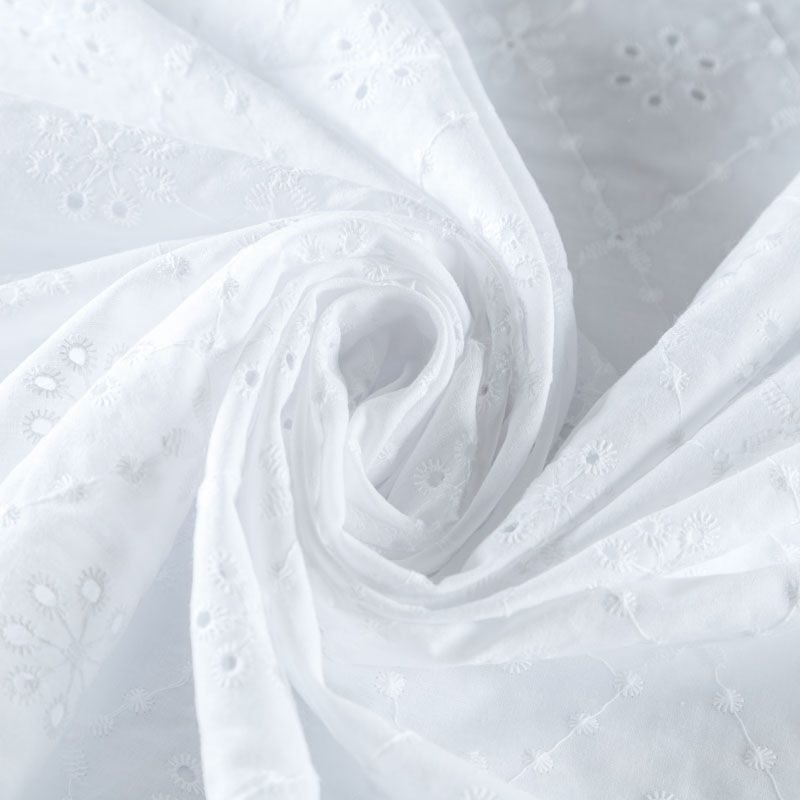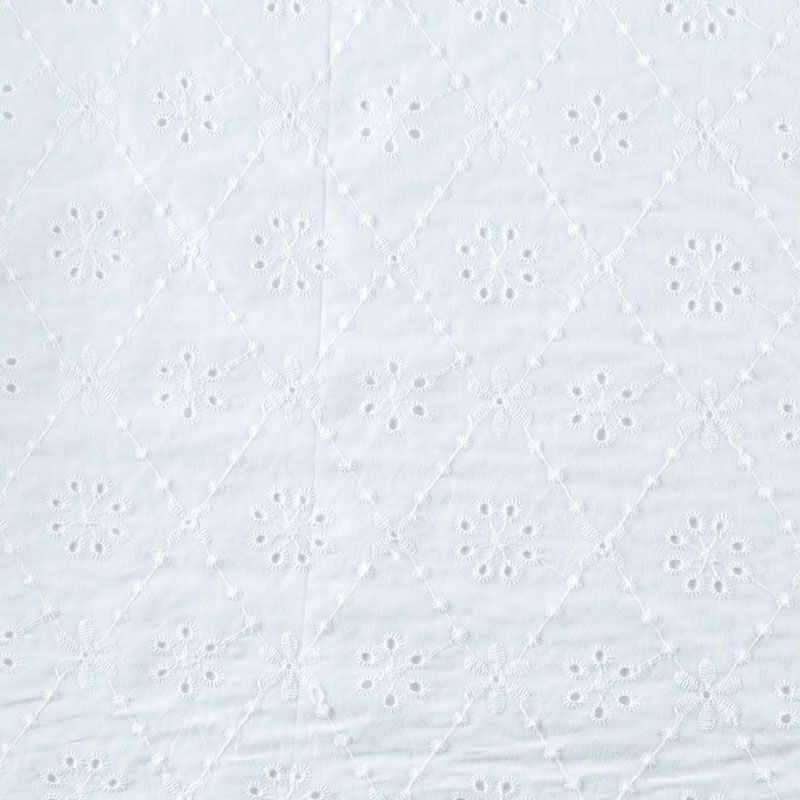 Итальянское шитье на белоснежной хлопковой основе с геометрической, элегантной вышивкой, расположеннной по всему полотну. Ткань мягкая, легкая, пластичная, приятная на ощупь, просвечивает, потребуется подклад. Обе кромки ткани оформлены фигурными фестонами. Идеально подойдет для пошива рубашки, блузы, топа в воланами, туники, платья, сарафана, юбки, шорт.