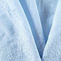 Мягкий и нежный хлопок голубого оттенка с изящной вышивкой. Узор выполнен путём машинной вышивки нитками в цвет ткани и расположен вдоль кромки. Фактура ткани однородная, имеет тенденцию к сминаемости, просвечивает, не тянется, приятная на ощупь. Идеально подходит для создания летних платьев, сарафанов, юбок, блузок и топов.