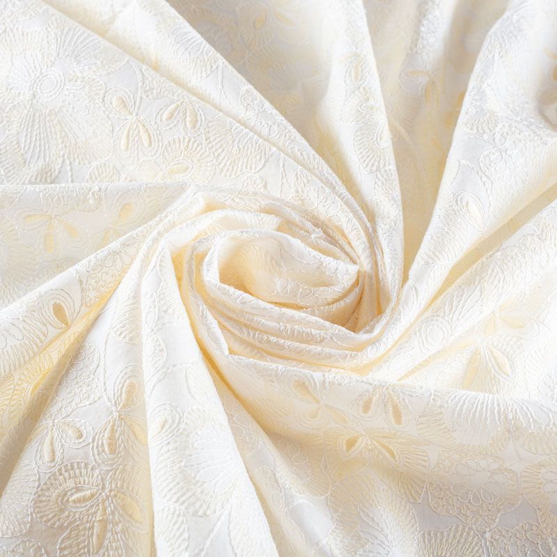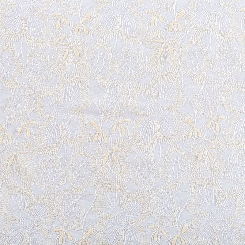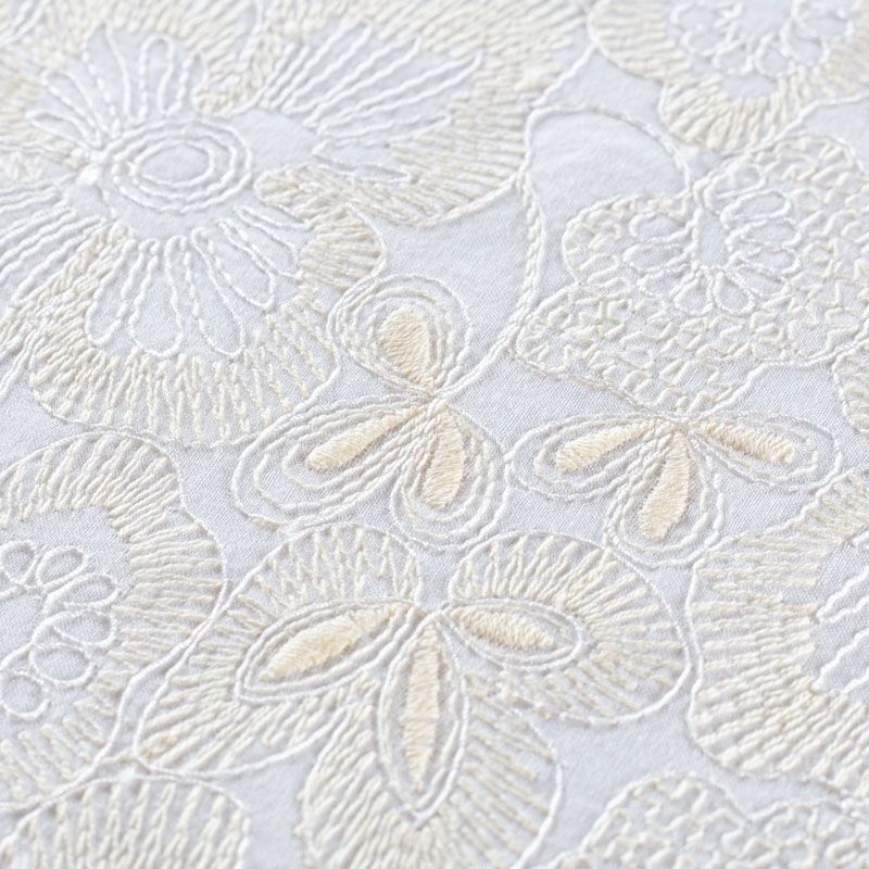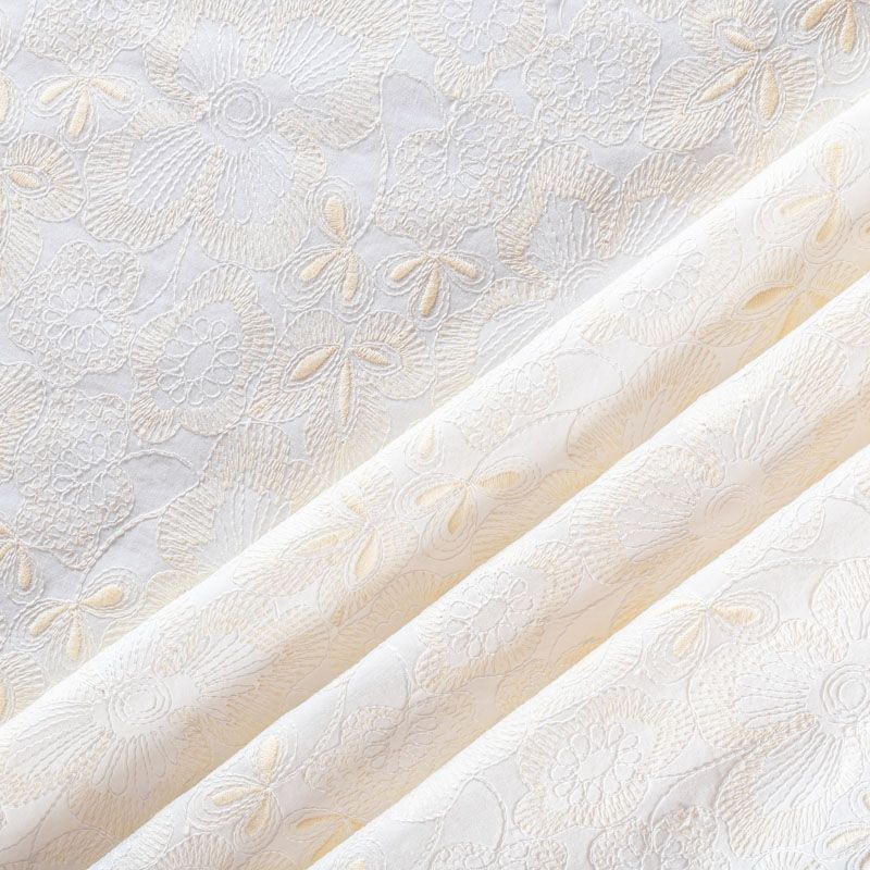 Итальянское шитье на хлопковой основе молочного оттенка с не крупной цветочной вышивкой,  расположеннной по всему полотну. Узор выполнен путем машинной вышивки нитками сливочного оттенка. Ткань очень мягкая, приятная на ощупь, слегка просвечивает. Идеально подойдет для пошива рубашки, блузы, топа в воланами, туники, платья, сарафана, юбки, шорт.